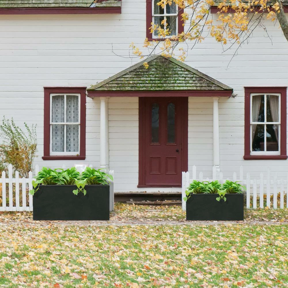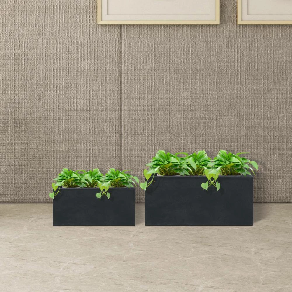 KANTE 31.4″ & 23.6″L Rectangular Charcoal Finish Lightweight Concrete Long Planters w/Drainage Hole Set of 2, Outdoor/Indoor