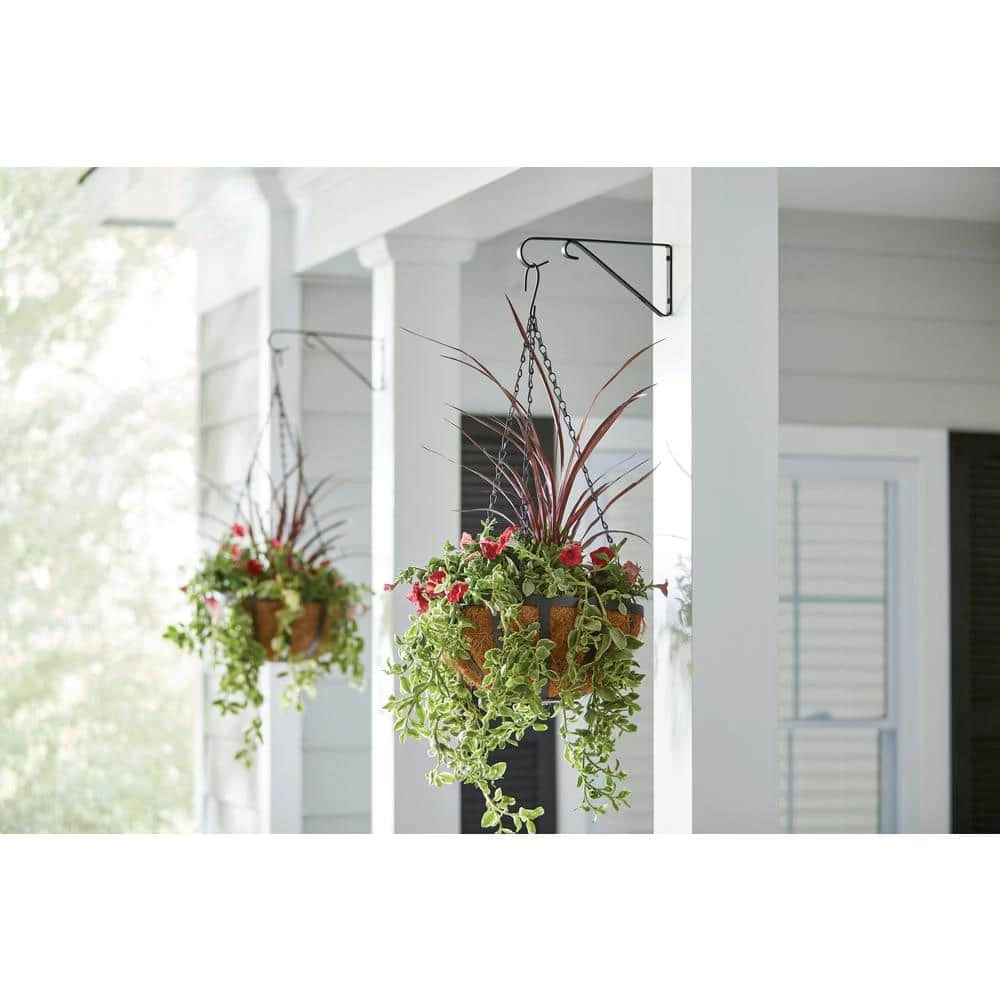 Hang your plants, flower pots and other garden / yard decor with the help of this Black Iron Plant Bracket. The bracket is made of solid iron and has a black coated finish. It includes all the necessary hardware for an easy installation and holds up to 40 pounds.